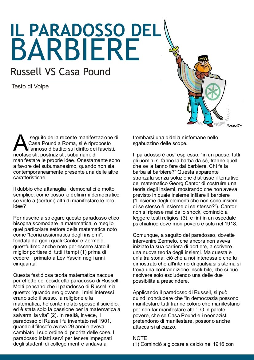 c’è da considerare, sulla questione della libertà di espressione, che siamo di fronte ad un problema à la russel (o à la zermelo). ne ha scritto un bravo blogger, in modo ironico, riguardo all’intervento di sansonetti a casa pound.