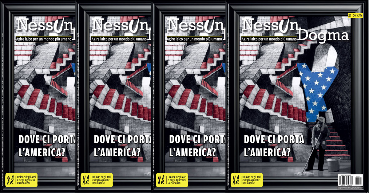 Ecco il nuovo numero del bimestrale dell’Uaar Nessun Dogma – Agire laico per un mondo più umano. Con interviste, rubriche, recensioni per conoscere l’impegno di uomini e donne, dell’Uaar e non solo. Con uno sguardo laico umanista su temi come diritti, etica, filosofia, politica, scienza. Sessanta pagine dedicate a chi vuole cambiare il mondo per renderlo più laico, più umano, più assennato. Con gli approfondimenti e le storie che non trovate altrove.
