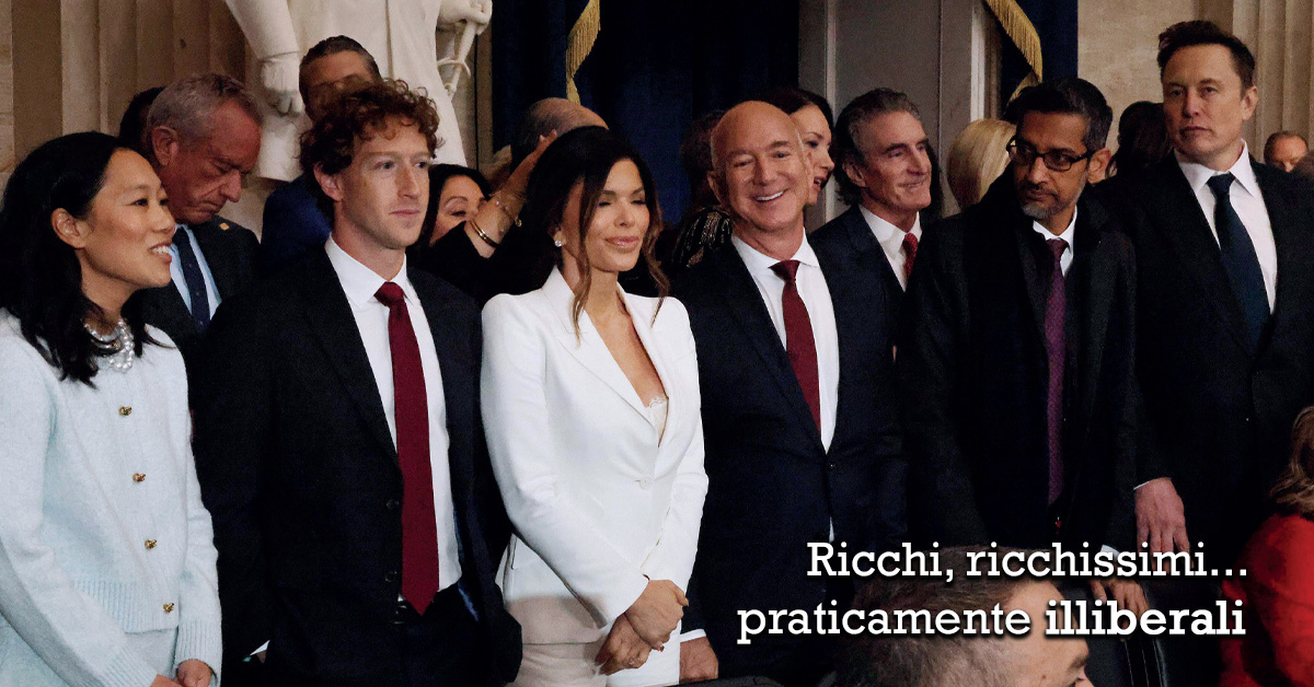Da bravi razionalisti, facciamocene una ragione. Gli uomini più ricchi del mondo hanno un’agenda personale (massimizzare i profitti), una politica (sostenere chi meglio può garantirglieli, cioè l’estrema destra) e una religiosa (flirtare con il fanatismo, che assicura un voto granitico a favore dell’estrema destra).