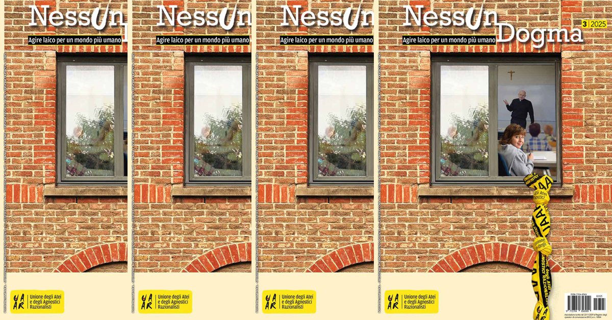 Ecco il nuovo numero del bimestrale dell’Uaar Nessun Dogma – Agire laico per un mondo più umano. Con interviste, rubriche, recensioni per conoscere l’impegno di uomini e donne, dell’Uaar e non solo. Con uno sguardo laico umanista su temi come diritti, etica, filosofia, politica, scienza. Sessanta pagine dedicate a chi vuole cambiare il mondo per renderlo più laico, più umano, più assennato. Con gli approfondimenti e le storie che non trovate altrove.