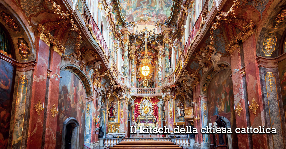 Per molti versi, l’approccio iper-decorativo del barocco è l’incarnazione più ovvia e diretta del kitsch nella definizione data da Dorfles da cui siamo partiti. Si confronti la citata chiesa del Gesù con la Asamkirche, ovvero la chiesa di San Giovanni Nepomuceno a Monaco di Baviera, che pure è considerata tra i capolavori del rococò. Oppure si confronti l’imponenza ancora in qualche modo ordinata della basilica di San Pietro a Roma con l’horror vacui della chiesa di San Francesco a Salvador in Brasile.