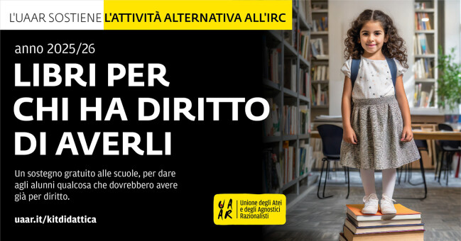“While the Minister of Education and Merit, Giuseppe Valditara”, Grendene concludes, “is distracted by the absurd parental authorization to teach a subject—sexual education—which has been mandatory in civilized countries for years, UAAR is writing to all schools to resolve a clear problem of educational inequality affecting children who attend the alternative activity to IRC. Primary schools will thus finally be able to guarantee the books that students have a right to.”